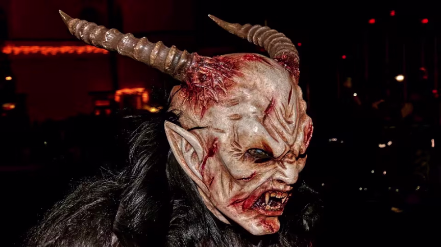As pessoas colocam roupas que imitam pele de animais e chifres e passam pelas ruas com correntes e sinos para avisar que estão chegando.