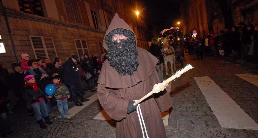 Na França, existe o Père Fouettard. Segundo um jornal da cidade francesa de Lorrain, sua aparência é a de um homem de barba negra que usa botas e um casaco grande. Ele tem um chicote ou um ramo na mão para bater em crianças. A passagem dele coincide com a de São Nicolau, personagem o qual ele acompanha.