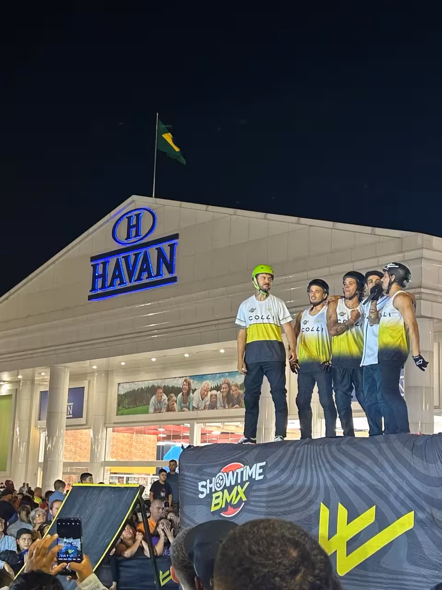 A Havan de Brusque receberá, na sexta-feira, 19, o showtime BMX, em parceria com a Colli Bicicletas. A ação acontecerá por volta das 19h30. O Showtime BMX é uma equipe de atletas profissionais que roda o Brasil fazendo shows em cima de uma bicicleta de aro 20 junto a uma megaestrutura de rampas, luzes, lança chamas, sonorização e mais. Estarão presentes no evento, Paulo Saçaki, juntamente com o seu time de grandes nomes de atletas, como: Edinho Delgado, Everton Vikin, Gustavo Bala Loka e o Dj Cleiton.