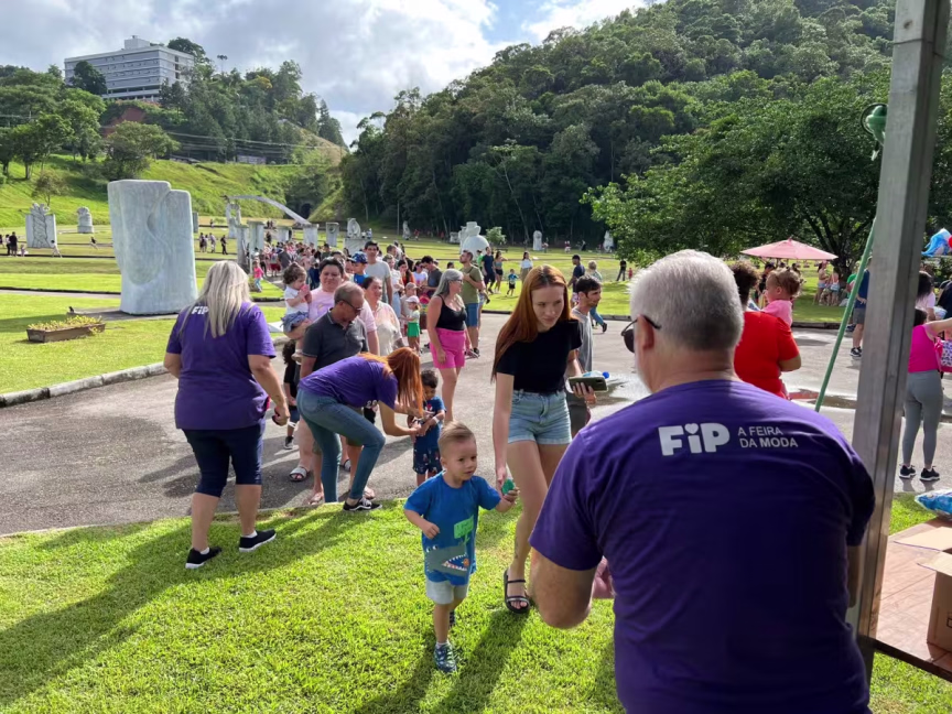 Não eram nem 9h deste domingo, 24, mas uma enorme fila de crianças já havia sido formada no portão do Parque das Esculturas, em Brusque, para participarem da tradicional Caça aos Ovos, reunindo centenas de famílias.