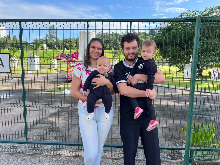 O casal Sirleni Haveroth, de 25 anos, e Linvauer Michel Arno Gartner, 31 anos, foram um dos primeiros a chegarem no parque com os filhos de um ano e o outro de apenas cinco meses para participarem da caça aos ovos.