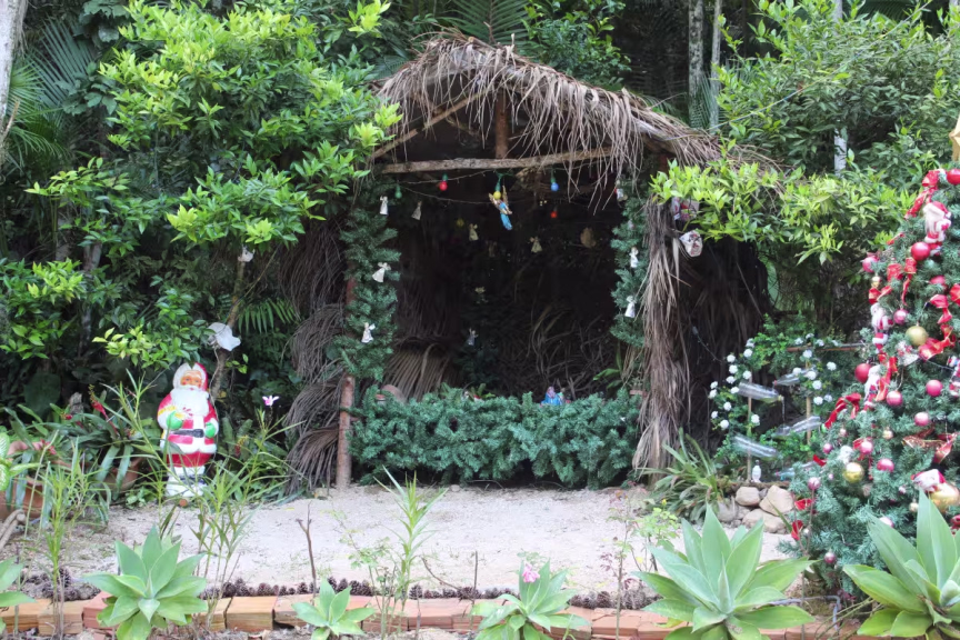 Em meio à natureza, no finzinho de uma rua no Holstein, em Guabiruba, moram Vera Lucia e Osmarino Caetano. O casal se mudou para a localidade há pouco mais de um ano e esta é a primeira vez que decidem investir na decoração natalina de casa.