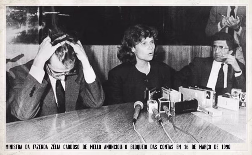 O anúncio não demorou. No dia seguinte à posse, sexta-feira, 16 de março de 1990, terceiro dia de feriado bancário, a então ministra da Fazenda, Zélia Cardoso de Mello, anunciou em coletiva de imprensa o Plano Brasil Novo, que popularmente ficou conhecido como Plano Collor.