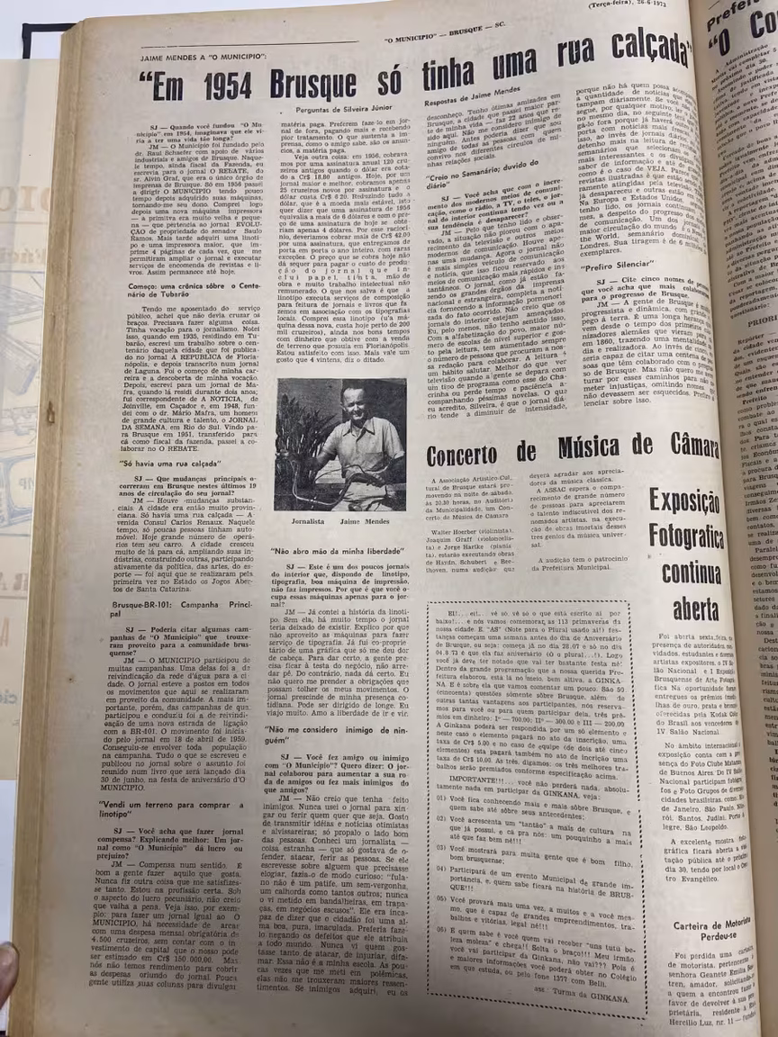 "Pela primeira vez, o jornal teve repórteres. Era uma novidade na época. Eu passava lá todo dia e via como era difícil manter um jornal em Brusque. Começamos com duas repórteres e as matérias ficaram mais dinâmicas. Mas tinha muita dificuldade, porque muita gente não queria receber as repórteres, consideravam uma intromissão, quando na verdade, se queria saber dos fatos para explicar para o público".