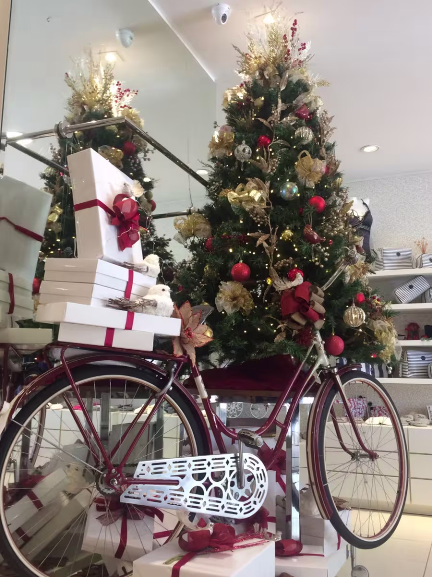 Loja de Brusque inova e utiliza bicicleta antiga na decoração natalina