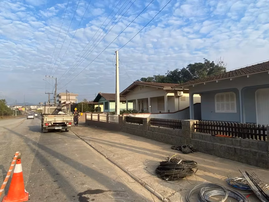 Moradores amanhecem sem energia devido acidente que destruiu poste no Dom Joaquim, em Brusque
