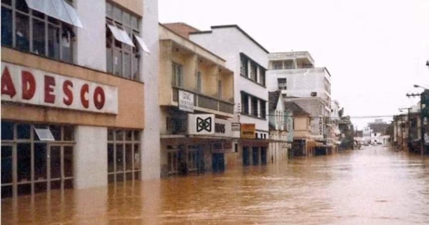 Nos anos 80, pior enchente da história de Brusque motivou a construção da avenida Beira Rio