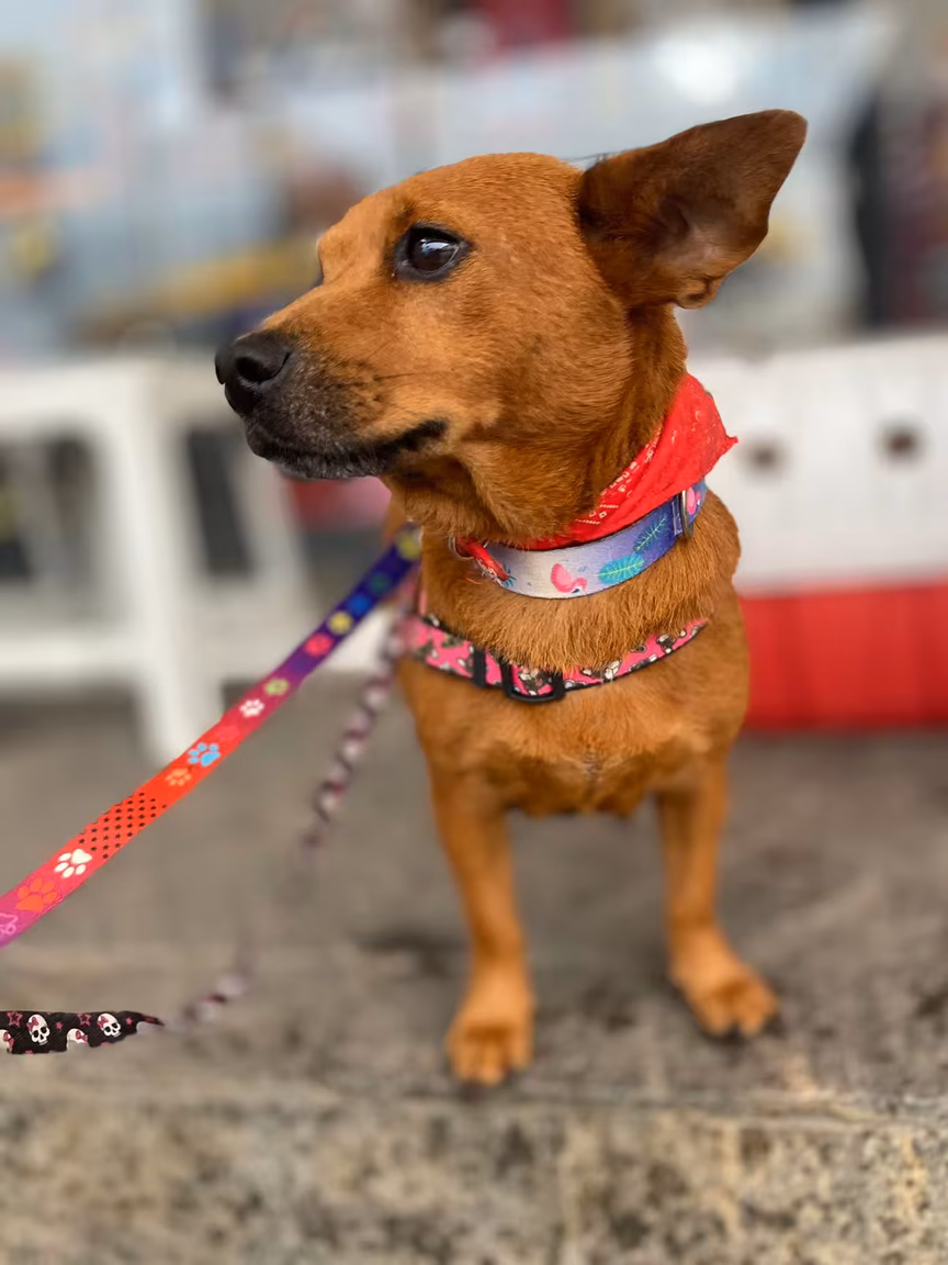 Porte P/M em torno de 1 ano, vacinada e será castrada em breve. Estava abandonada em uma rua movimentada.