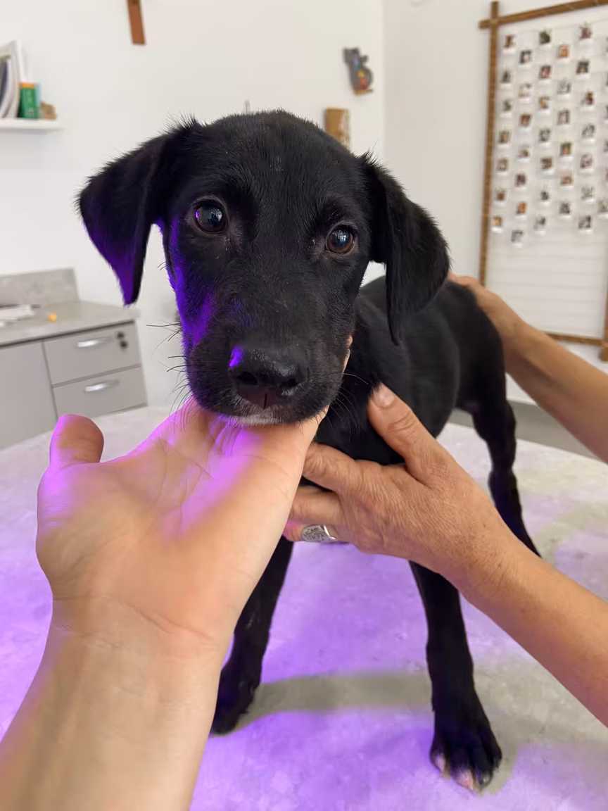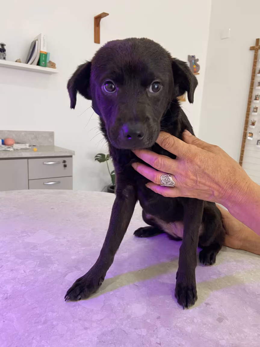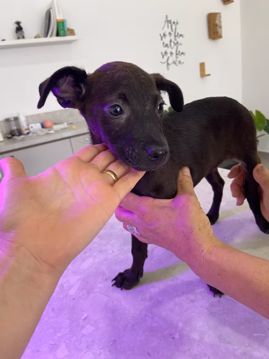 Filhote e último que sobrou da ninhada que foram abandonados no lixo, vacinado. Provavelmente porte G.