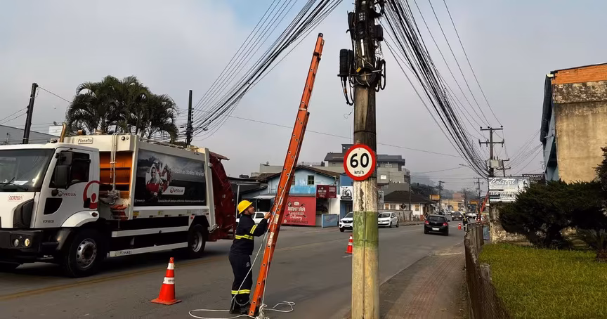 Na sexta-feira, o trabalho ocorreu mais uma vez na rua Santos Dumont, no bairro Santa Terezinha, da altura da antiga Baiúca do Jorge (próximo ao número 623), até a Floricultura Ristow. Os funcionários envolvidos recolheram aproximadamente uma tonelada de fios e cabos dos postes.