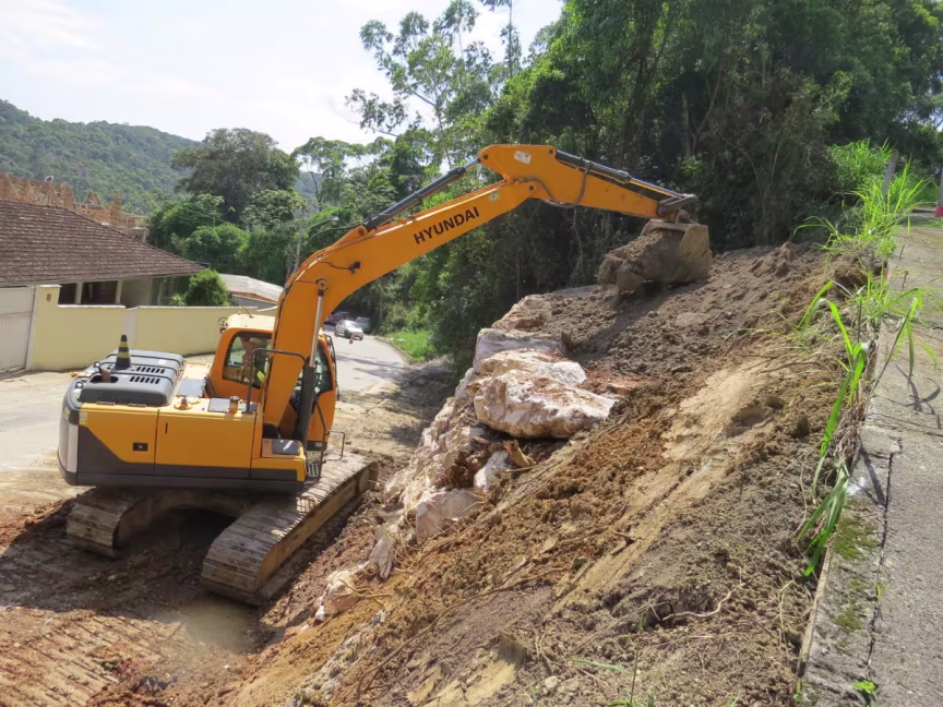 “Sem o enrocamento, o talude poderia ceder completamente, provocando deslizamentos, interrompendo o trânsito e colocando em perigo a rede elétrica. Além disso, o uso de pedras brutas detonadas permite uma contenção robusta e duradoura, minimizando o impacto das chuvas futuras”, detalhou.