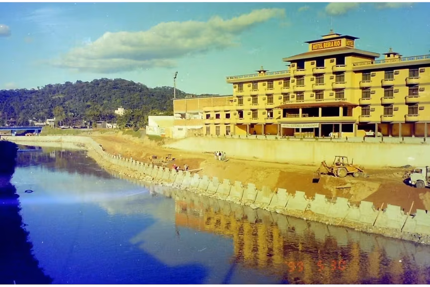 E estando às margens do rio Itajaí-Mirim, Nilo conta que houve uma ocasião em que a água do rio chegou até a recepção do hotel, na enchente de 2008.