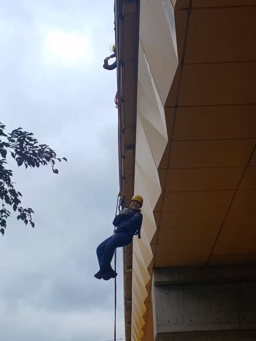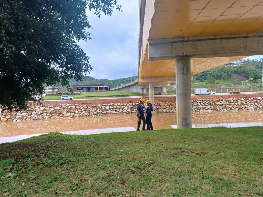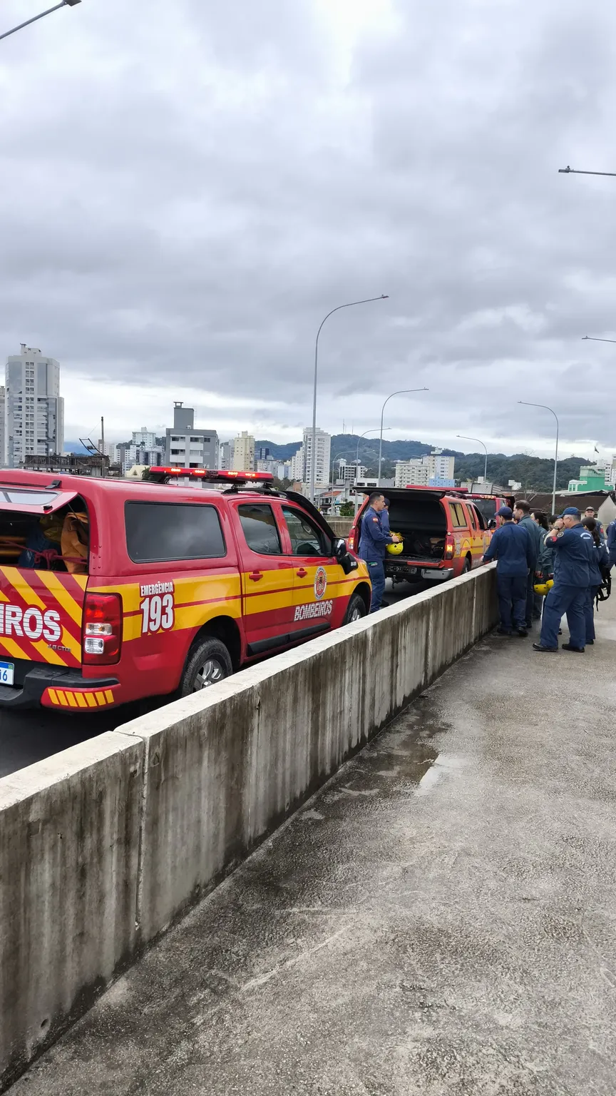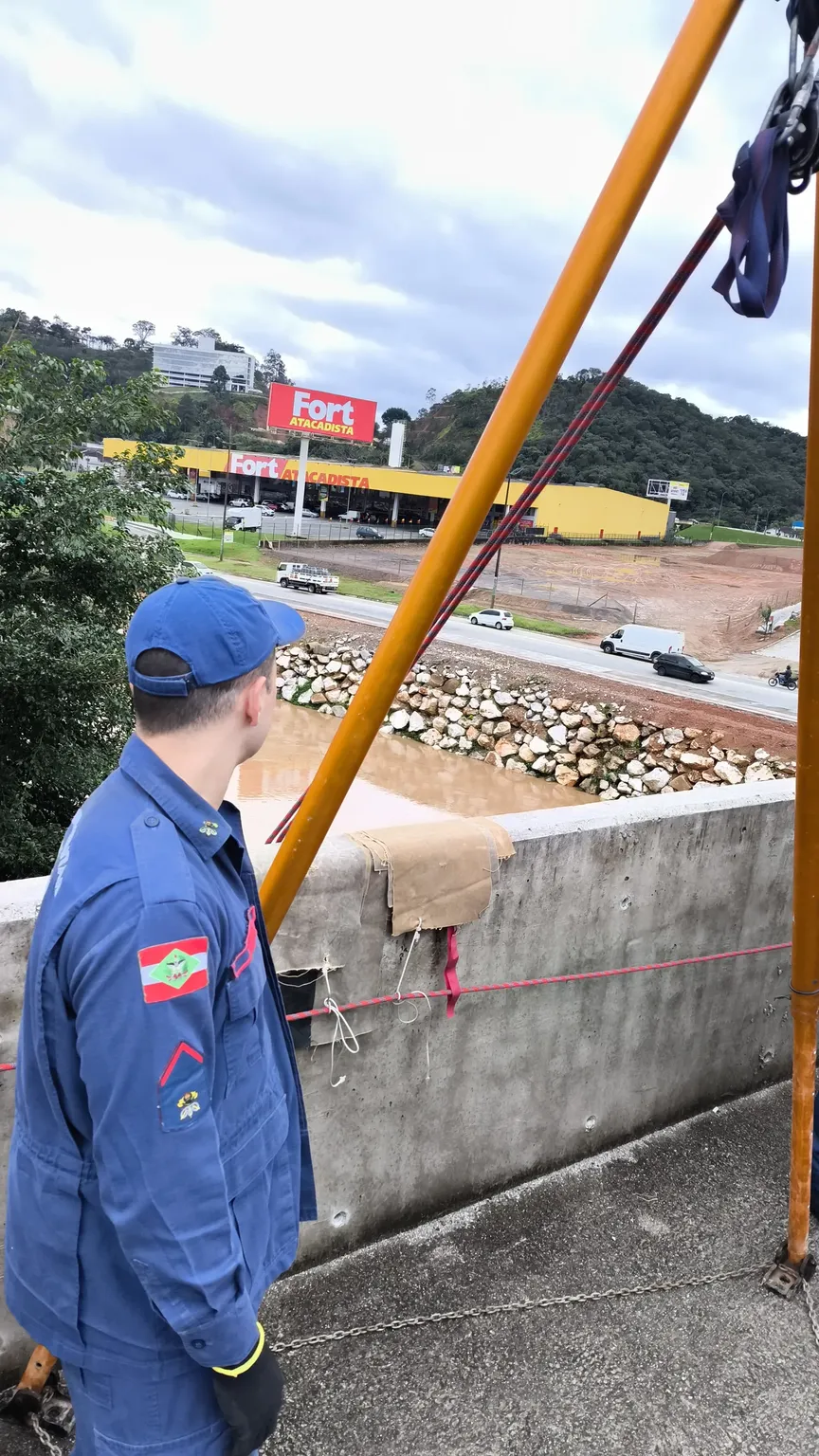 VÍDEO – Bombeiros fazem treinamento de resgate em altura em ponte no Centro de Brusque
