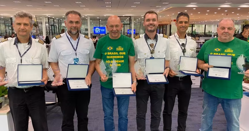 Os quatro pilotos e o mecânico que atuaram ativamente desde os primeiros dias no transporte de mantimentos, medicamentos e pessoas, receberam uma placa e um troféu expressando gratidão aos heróis que não mediram esforços para ajudar as vítimas das enchentes no Rio Grande do Sul.
