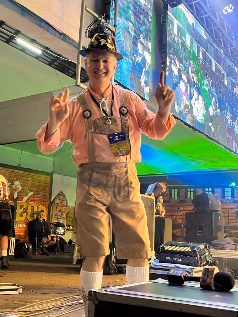 O servidor da Fundação de Turismo de Brusque, Ademir Moraes, a voz da Fenarreco, se despede da festa após mais de 30 anos de atuação. Em 2026, ele irá se aposentar do serviço público.