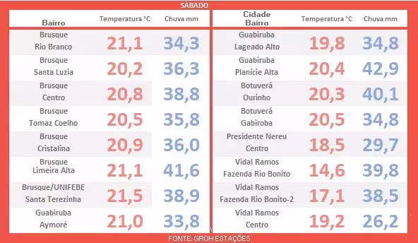 Dando continuidade à edição deste sábado, destacamos agora as informações sobre o monitoramento do tempo na região brusquense durante a madrugada que passou.