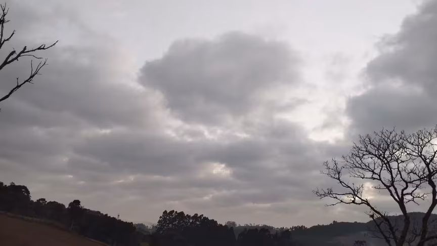 O céu tende a permanecer com predomínio de nuvens, permitindo apenas aberturas breves de sol ao longo do dia.