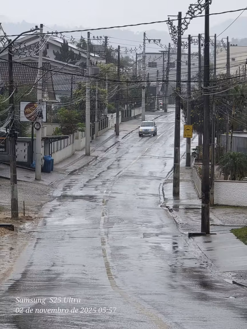 Os primeiros pingos de chuva que começaram a cair sobre a região de Brusque ainda durante a madrugada deste domingo, 2, prosseguiram nas primeiras horas da manhã, embora com intensidade considerada fraca.