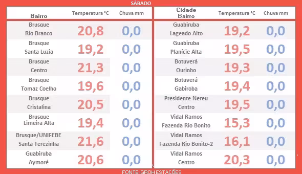 Vamos iniciar este boletim, com as informações direcionadas para Brusque e demais cidades situadas no Vale do Itajaí-Mirim, neste sábado.