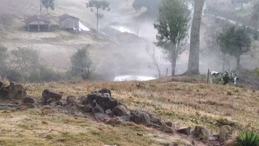 Destaque para Vidal Ramos, que iniciou o dia com apenas 1,6°C, potencializando mais um evento de geada no município.