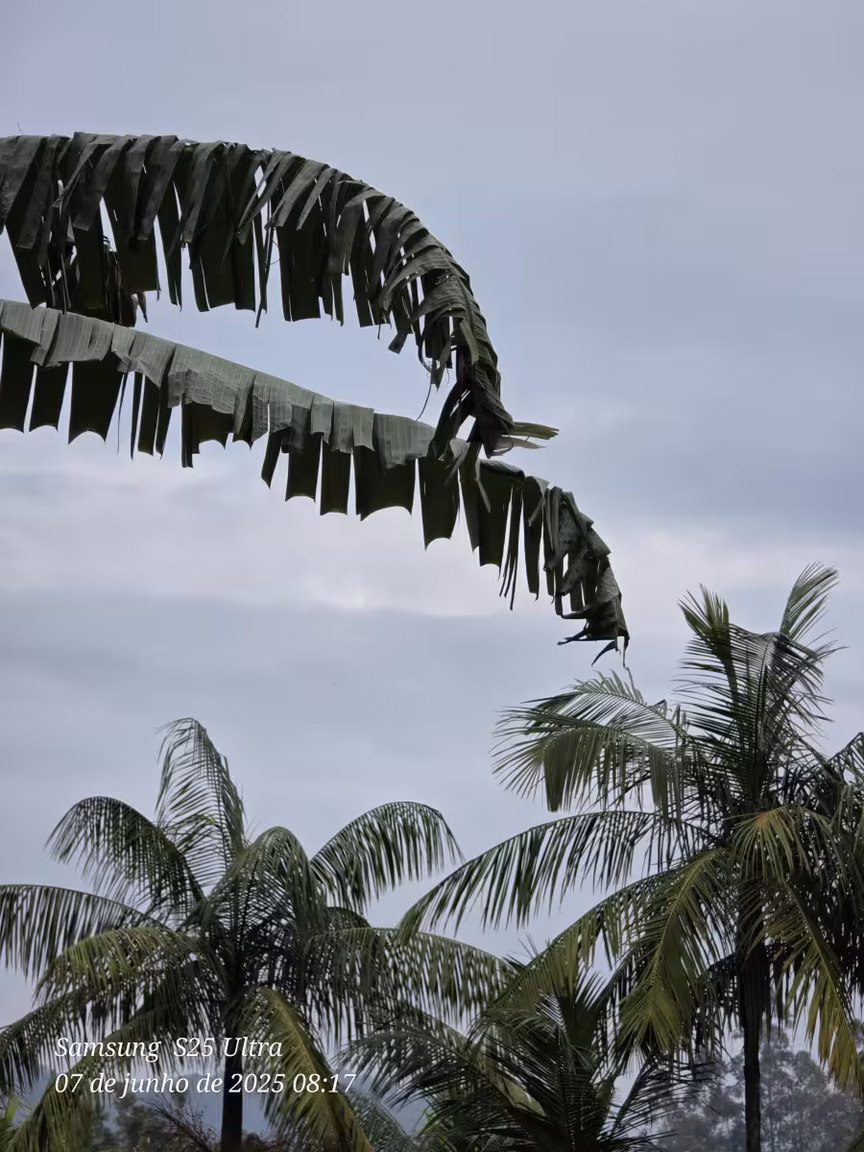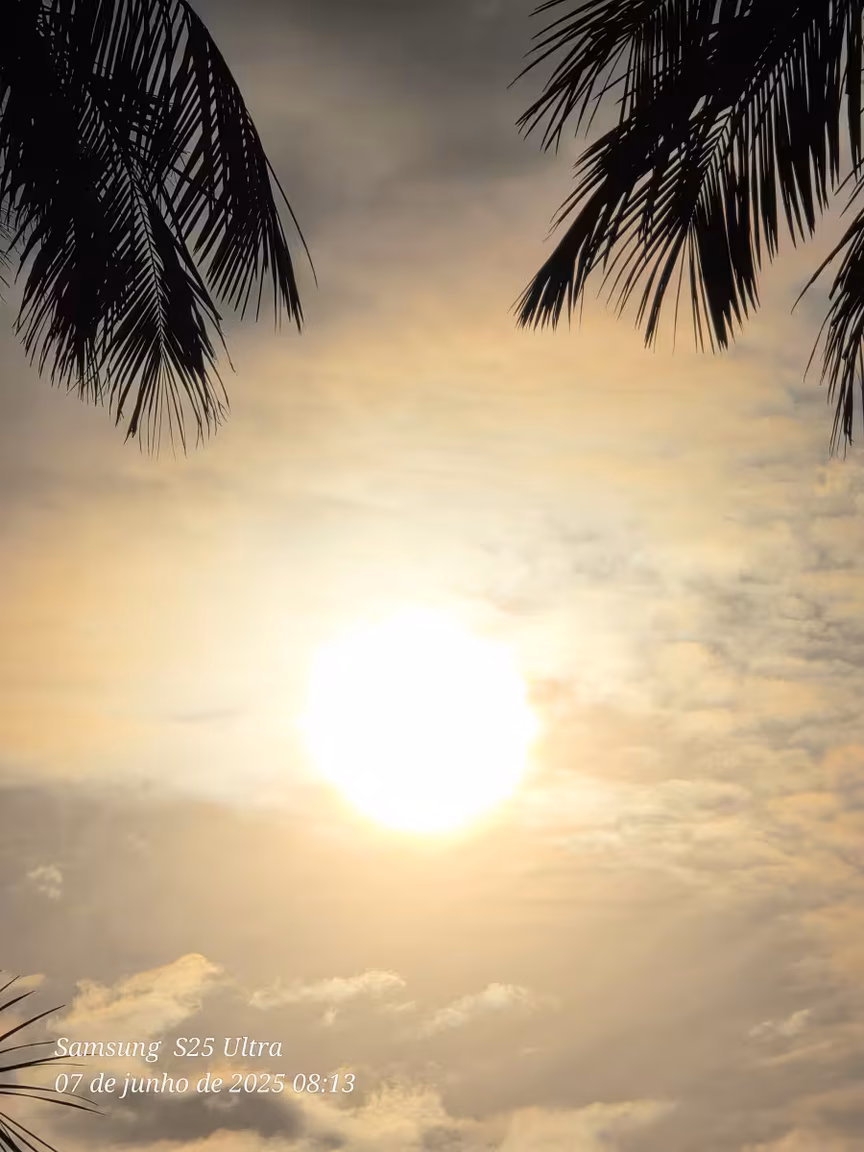 No domingo, o cenário se torna ainda mais instável. O tempo segue encoberto e a possibilidade de chuva aumenta, podendo ocorrer a qualquer hora do dia.