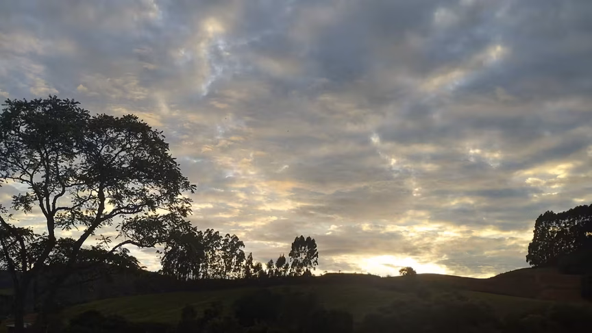 Essa condição mantém o padrão climático típico de outono, sem extremos de calor, mas com variação térmica moderada.