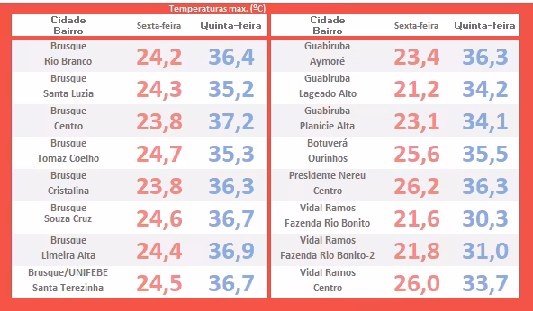 A seguir, apresentamos um levantamento que evidencia essa alteração no comportamento das temperaturas, perceptível não apenas em Brusque, mas em todo o Vale do Itajaí-Mirim.