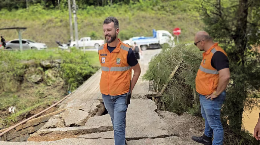 Defesa Civil isola trecho onde ponte de madeira cedeu no Cedro Alto, em Brusque