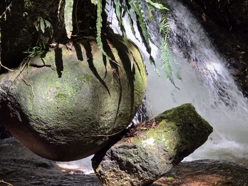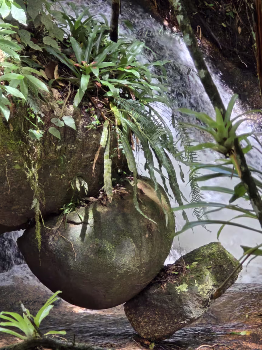 As fotografias revelam em detalhes a beleza singular das pedras e da cascata, que permanecem como testemunho silencioso da força criadora da natureza.