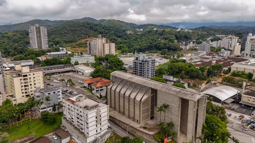 Através das lentes aéreas do drone, e também com algumas perspectivas do solo, essas imagens retratam, de forma eloquente, o clima frio que antecede a chegada do inverno em Brusque.