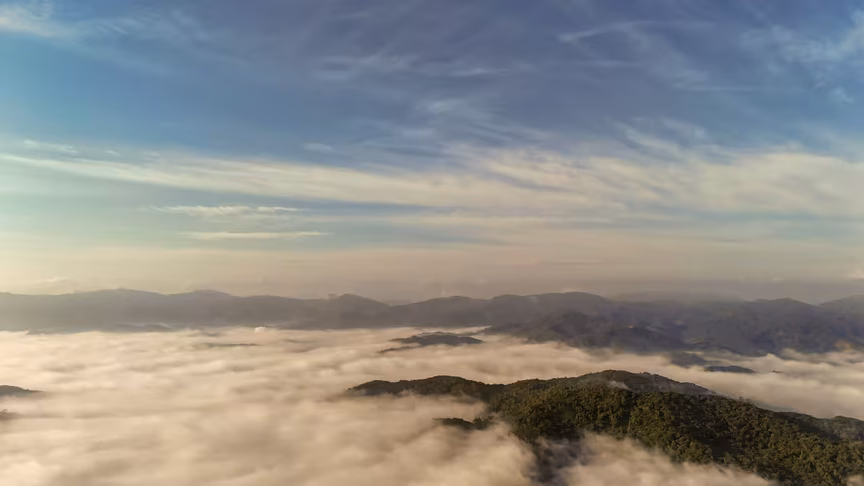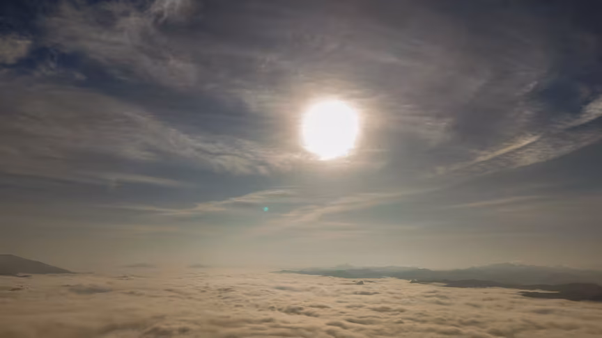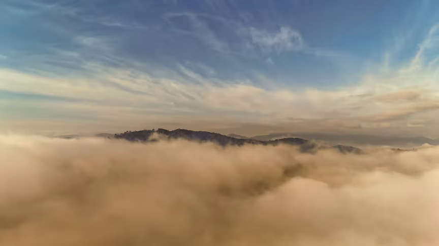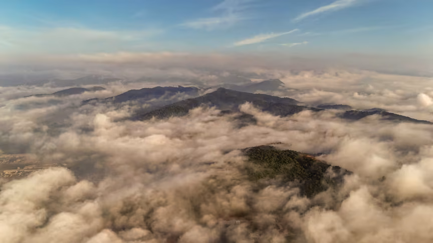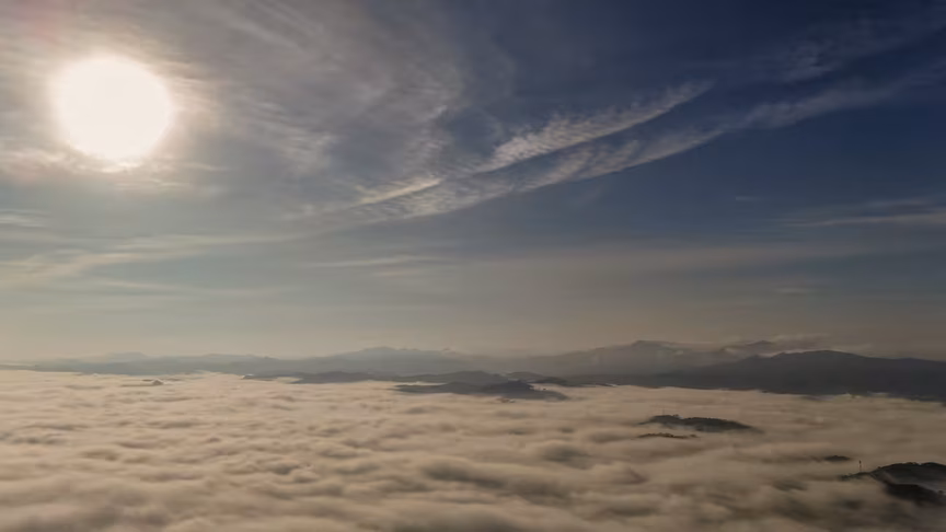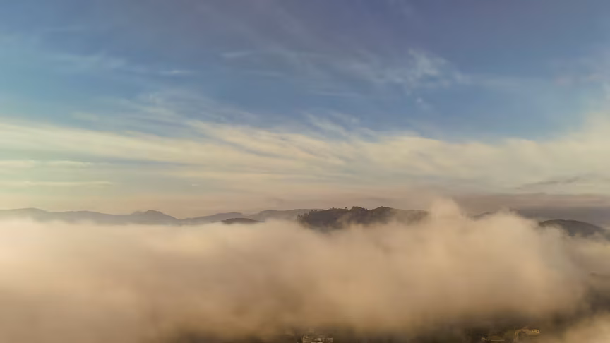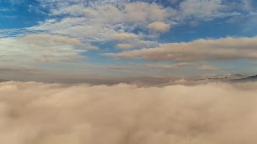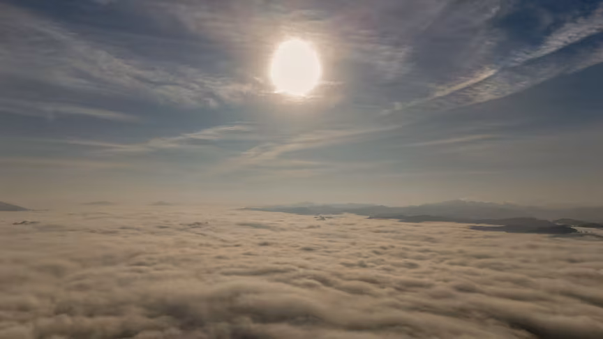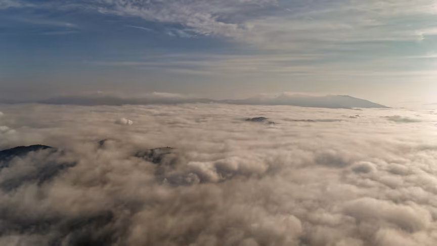 Brusque vista acima do nevoeiro: o que o drone viu impressiona