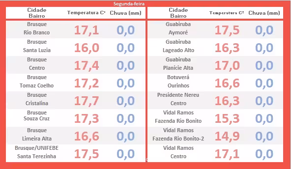 Neste boletim, apresentamos um panorama abrangente das condições do tempo que a região de Brusque pode esperar ao longo da semana.