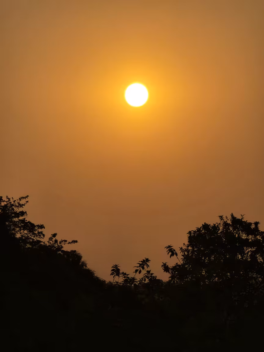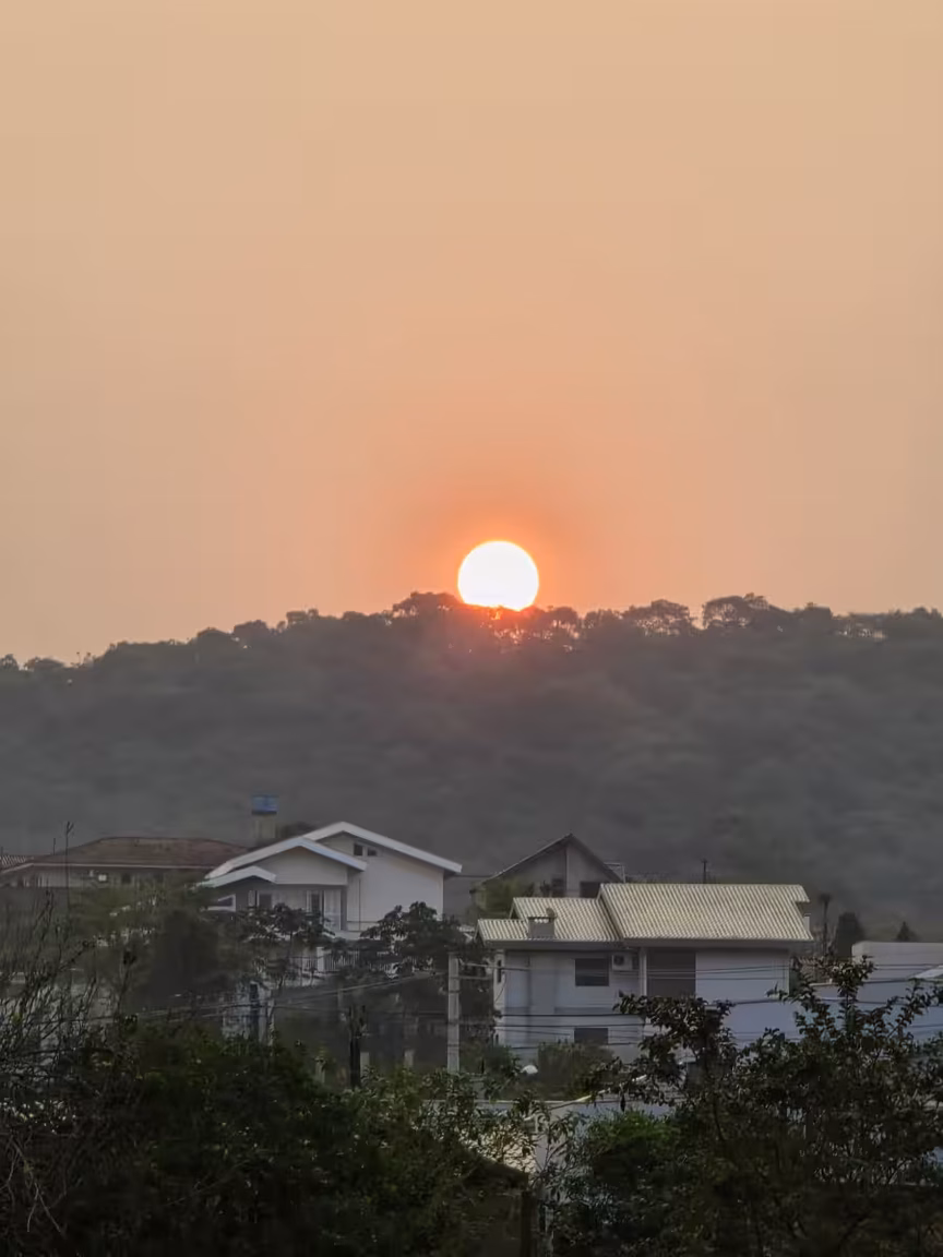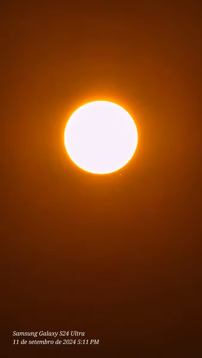 O sol, parcialmente ofuscado por essa névoa acinzentada, perdeu parte do seu brilho. No entanto, ao final do dia, esse fenômeno resultou em um espetáculo visual único.