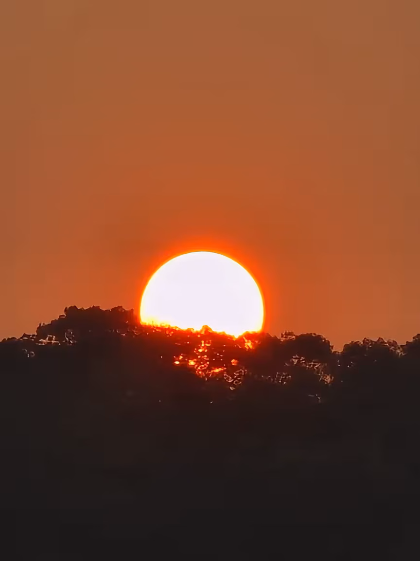Um pôr do sol com tons de fogo iluminou o horizonte de forma deslumbrante.