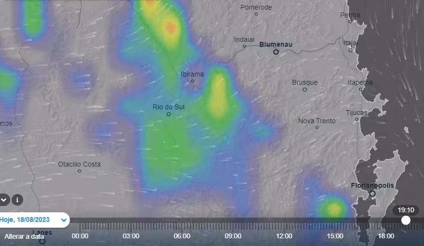A razão para isso é a chegada iminente de uma frente fria, prevista para adentrar ao Vale do Itajaí do Vale do Itajaí ainda no decorrer da noite de hoje, explica.