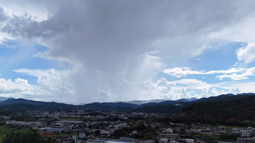 Calor e trovoadas: imagens do céu de Brusque após máximas de 35°C