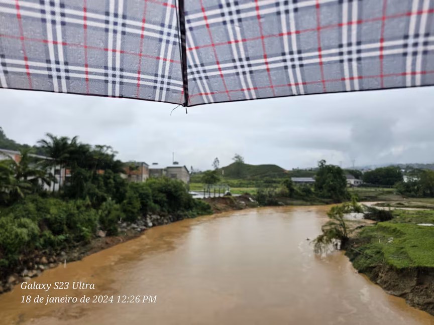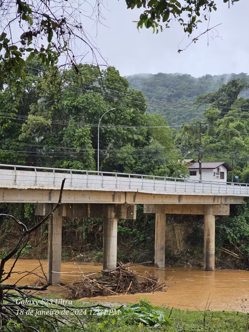 A imagem abaixo, gentilmente compartilhada pelo casal João e Bel Finck, oferece uma visão clara da correnteza do Itajaí-Mirim em Vidal Ramos, próximo à área central da cidade.