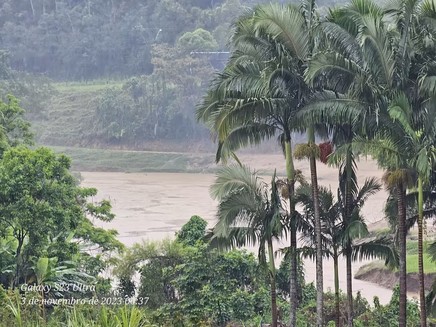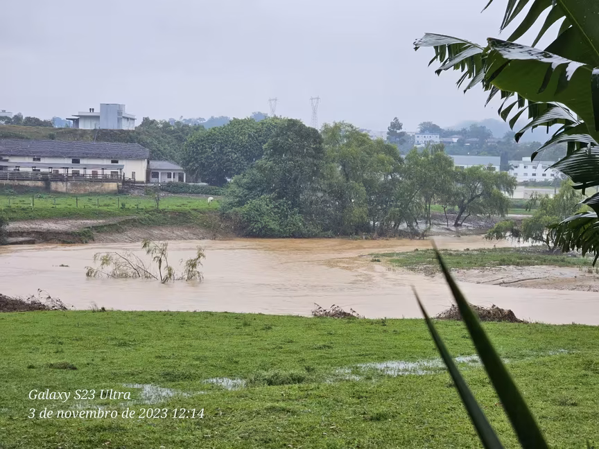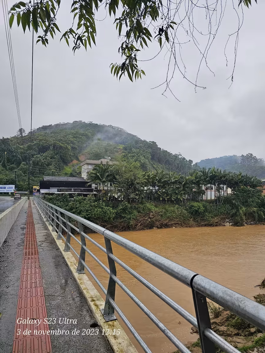 Na manhã desta sexta-feira, por volta das 8h15, o rio Itajaí Mirim atingiu um pico de 3,43 metros em Vidal Ramos, município que abrange suas principais nascentes.
