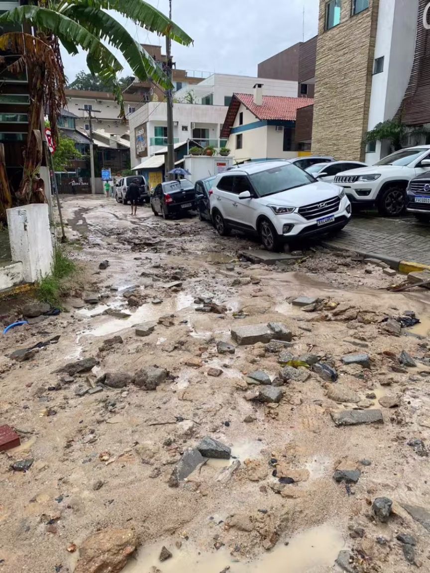Conforme a Defesa Civil de Bombinhas, o município foi um dos mais atingidos na região. Segundo a Epagri, nas últimas 24 horas choveu 163 milímetros na cidade.