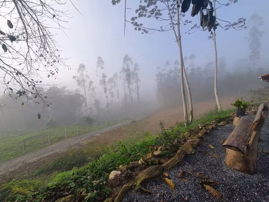 Confira na galeria, lindos cenários formados pelo frio no Vale do Itajaí-Mirim no começo da manhã de hoje