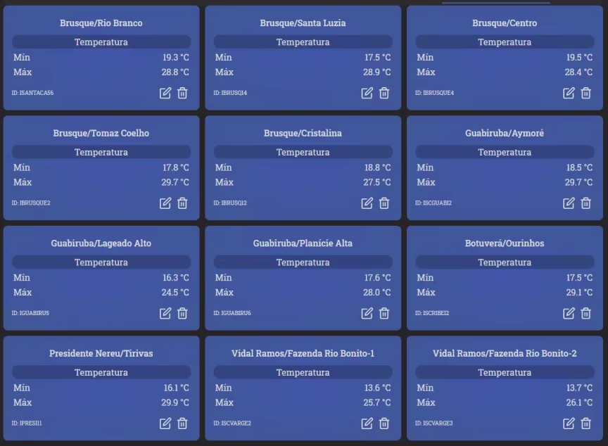 Confira abaixo como ficaram os índices extremos (temperaturas mínimas e máximas) nesta terça-feira por todo o Vale do Itajaí-Mirim: