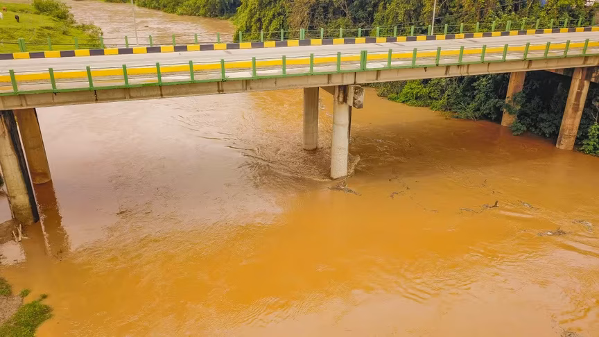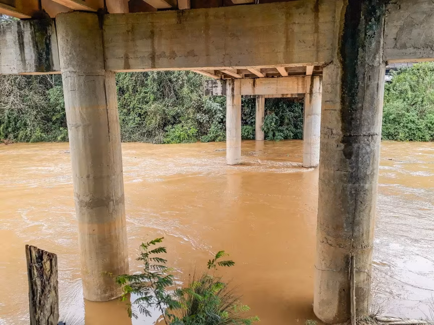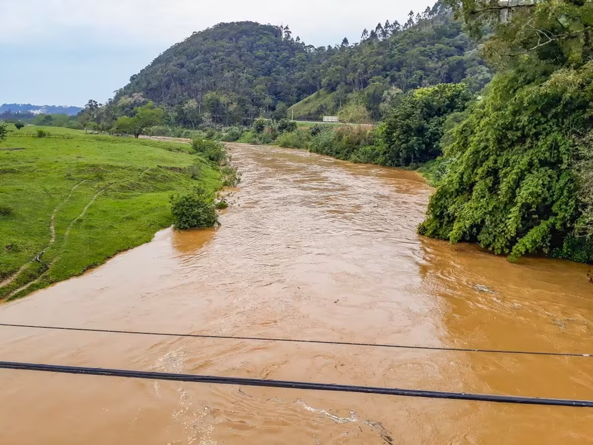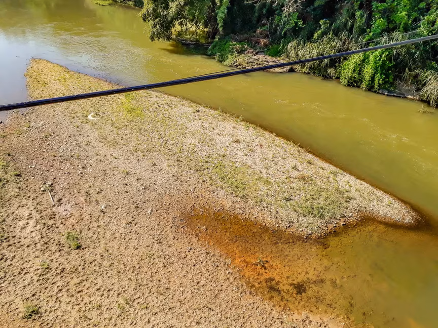 Antes e depois da estiagem: confira imagens do rio Itajaí-Mirim registradas neste sábado em Brusque
