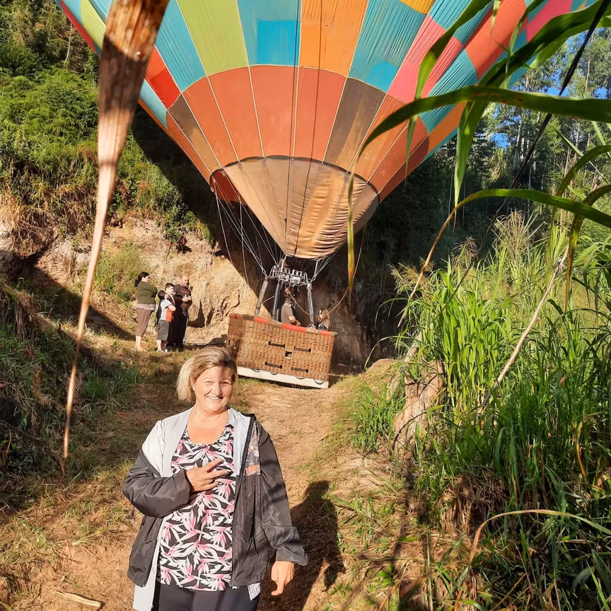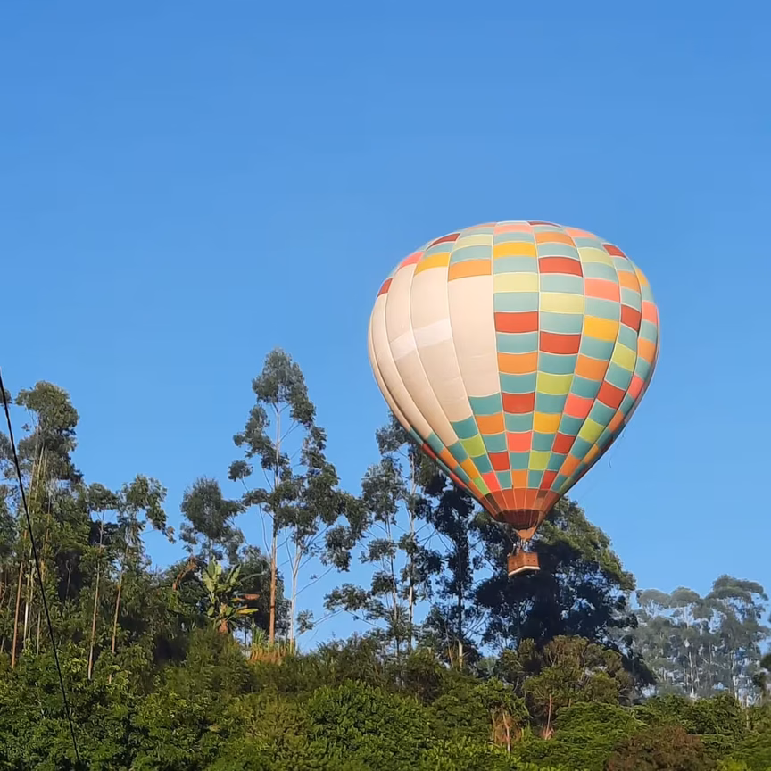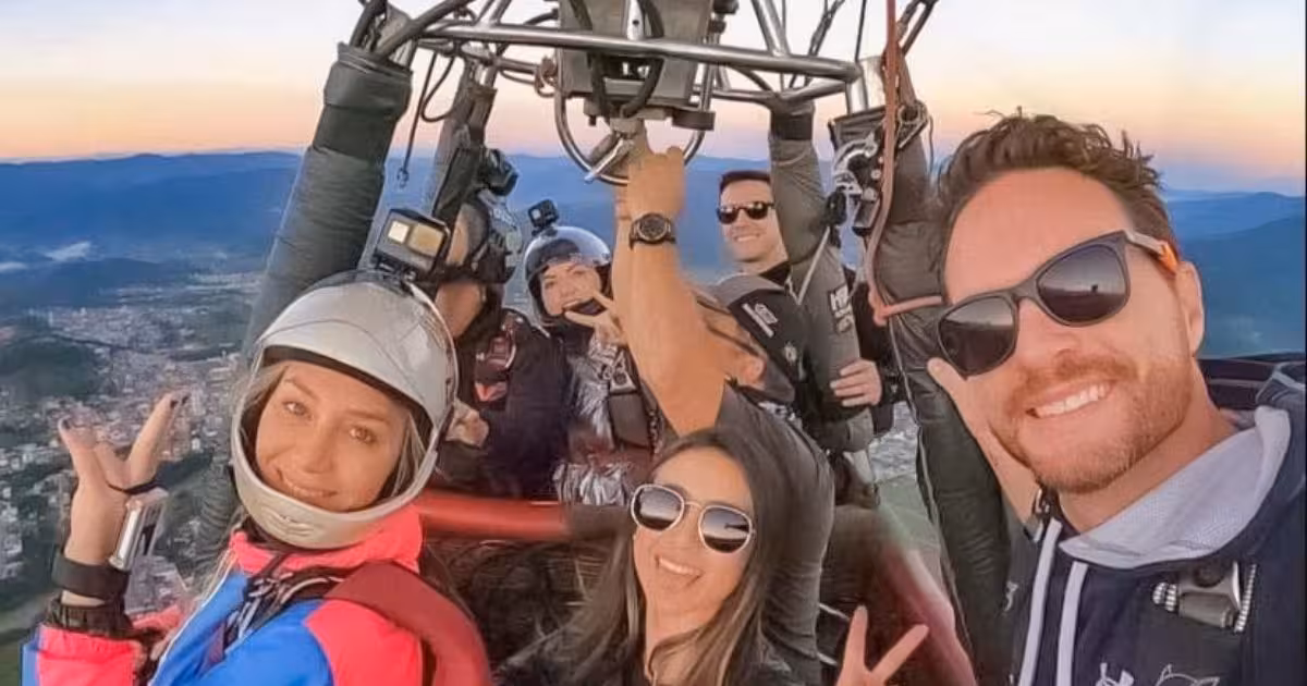 Um balão de ar quente com 7 pessoas a bordo levantou voo na manhã desta quinta-feira, 29, de São João Batista, no Vale do Rio Tijucas.