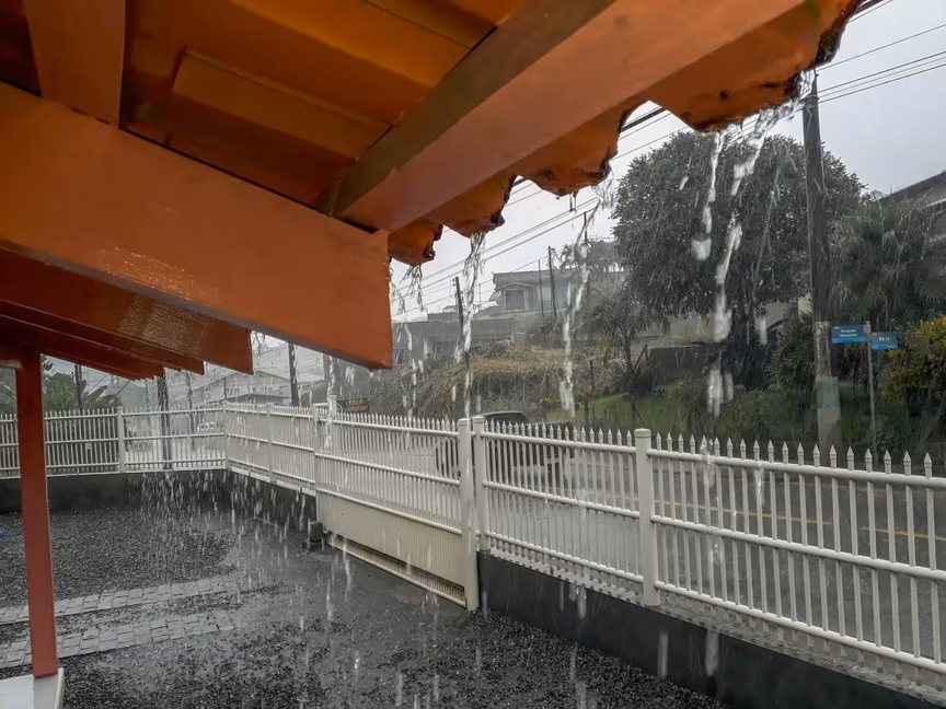 As chuvas previstas para Brusque nesta terça-feira, 23, vieram acompanhadas de ventos fortes e queda de granizo no município no decorrer da tarde.
