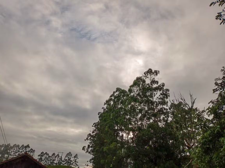 "Isso vem favorecer a presença de muitas nuvens com rápidas aberturas de sol ao longo do dia e condição para chuva ocasional e alguma eventual trovoada. A temperatura máxima oscila entre 28 e 30ºC e o vento sopra fraco de leste/sudeste".