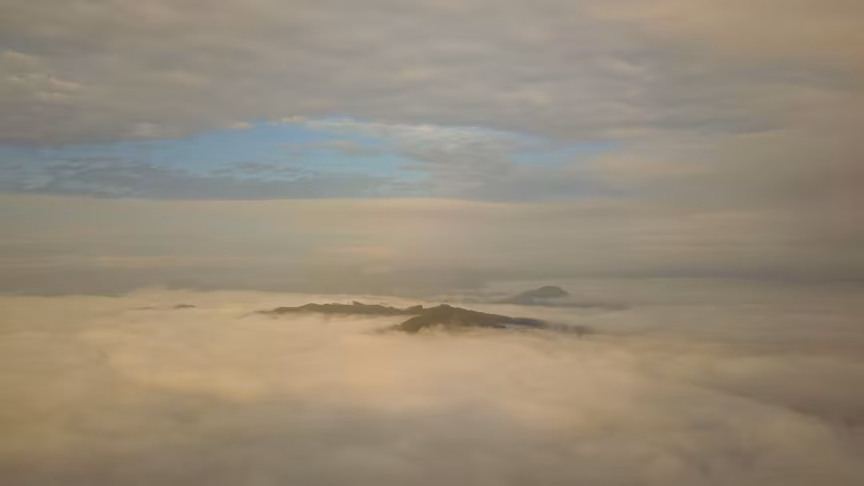 Belas imagens aéreas no nevoeiro presente no município nas primeiras horas da manhã deste domingo