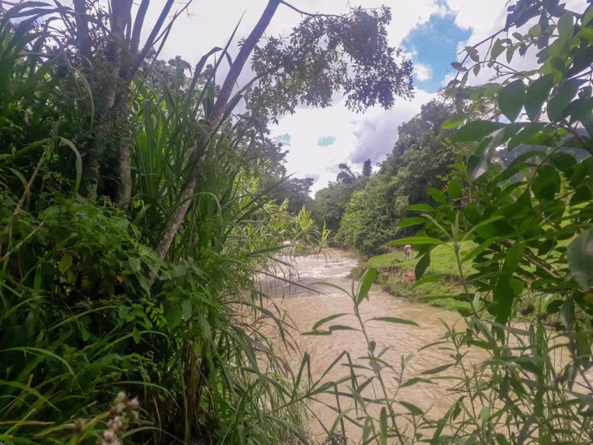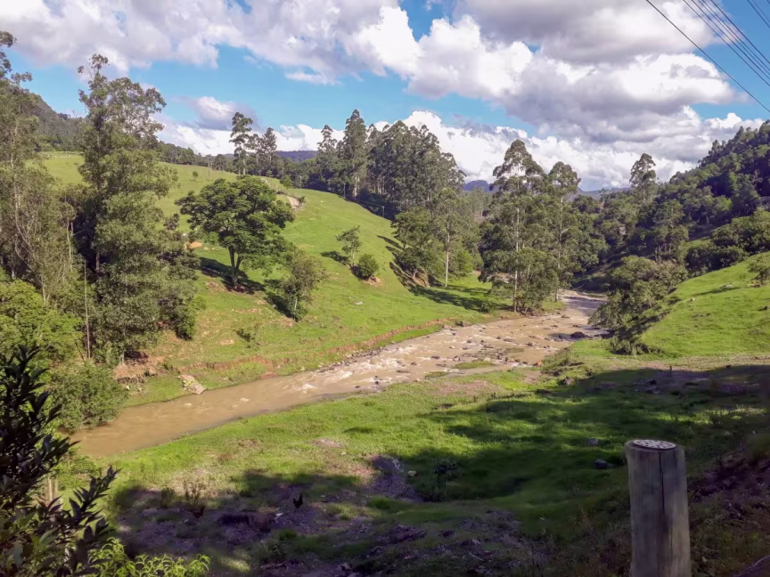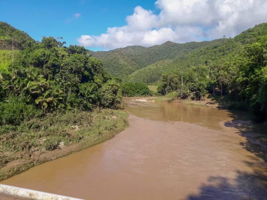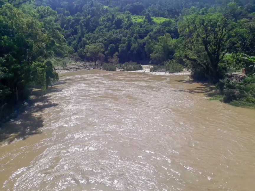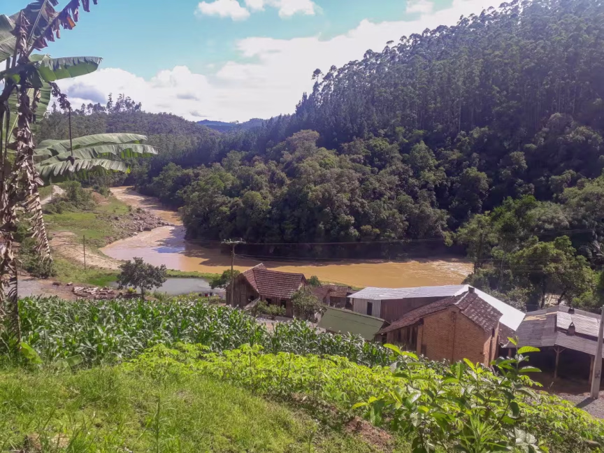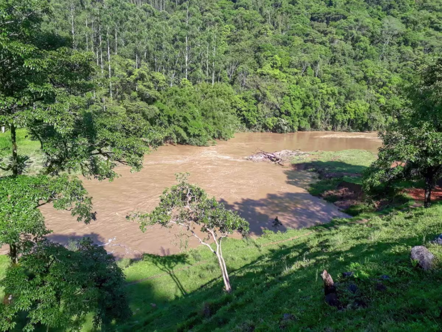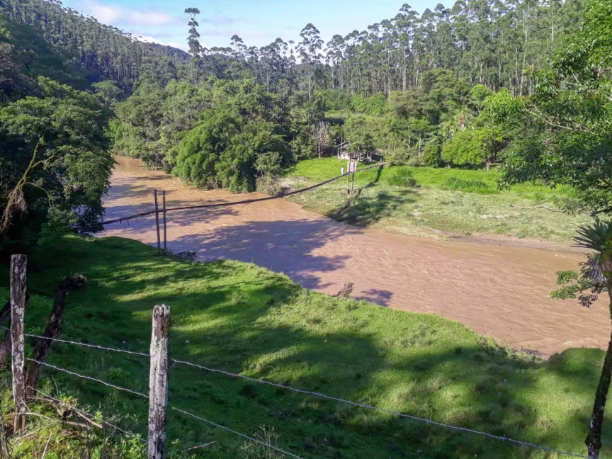 Já mais abaixo em relação à região das nascentes está a localidade de molungu, também em Vidal Ramos. A água do rio já se mostra mais turva: