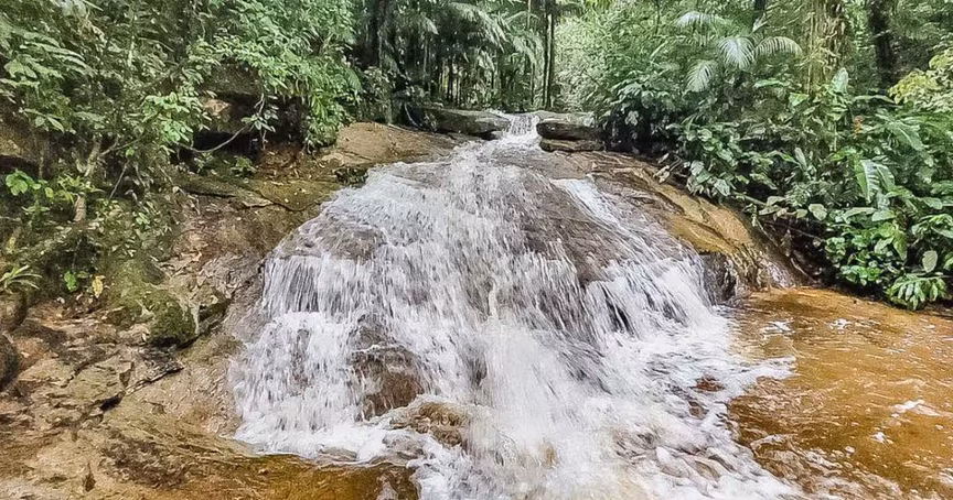 Chuva desta sexta-feira excede 80mm em Guabiruba e aumenta vazão de água da cachoeira da Pedra Lisa
