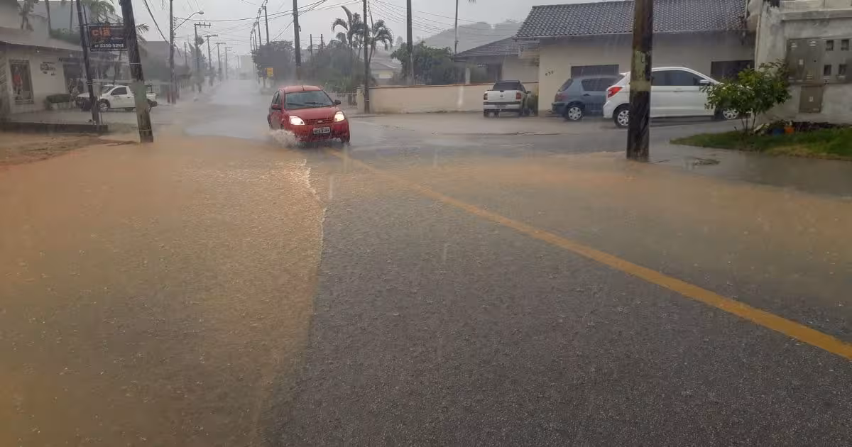 A forte chuva que caiu em parte de Brusque no início da tarde desta sexta-feira, 8, causou pontos de alagamentos na rua Ernesto Bianchini, no bairro Rio Branco.