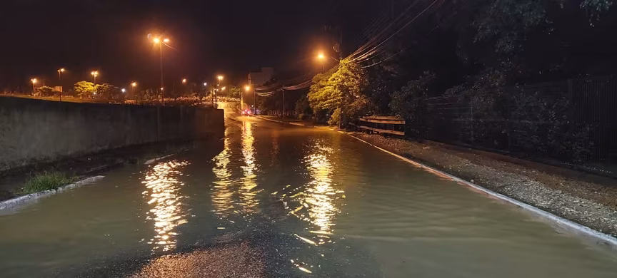 Os motoristas tiveram que ter atenção redobrada ao trafegar em alguns trechos dos bairros, Rio Branco e Souza Cruz na noite desta segunda-feira. A água tomou conta da pista dificultando a passagem.